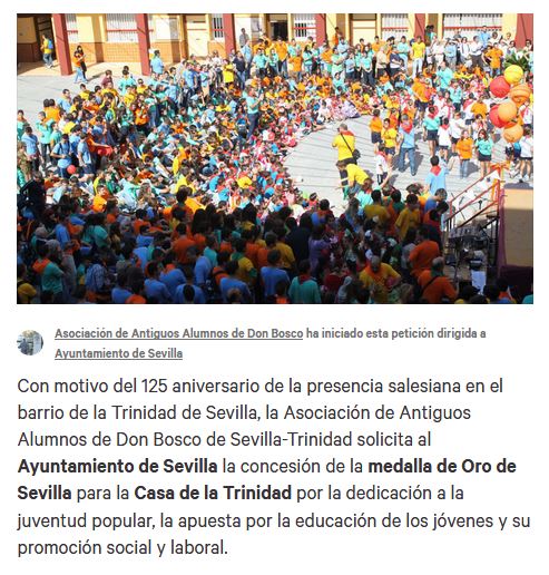 ResponderEliminarEl reconocimiento a la labor educativa y social que el estilo salesiano ha regalado por 125 años a la ciudad de Sevilla